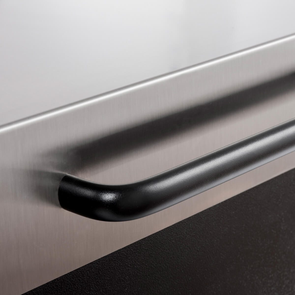 - Hat zusätzliche, nützliche Ausstattungen, wie eine praktische Halterung für Backwerkzeuge, einen praktischen Handgriff für müheloses Verschieben, einen Flaschenöffner und Haken zum Aufhängen anderer Utensilien (z. B. Geschirrtücher oder Ofenhandschuhe).
