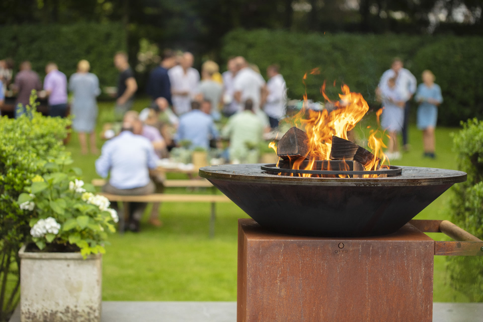 Für den professionellen Einsatz im Catering, in der Gastronomie oder Hotellerie verfügt der OFYR Classic Corten 100 PRO zusätzlich über einen Griff und Räder. So kann er einfach transportiert werden. Der Griff ist aus hochwertigem Teakholz gefertigt.