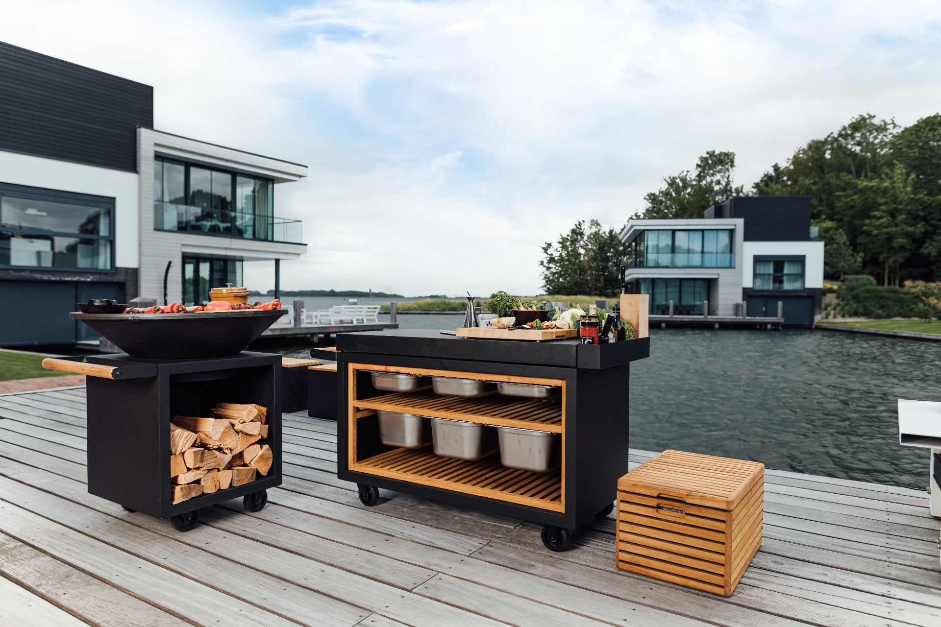 Diese PRO-Kocheinheit ist Teil eines ganzen Möbelkonzepts für eine professionelle Aussenküche und auf Rollen verschiebbar.