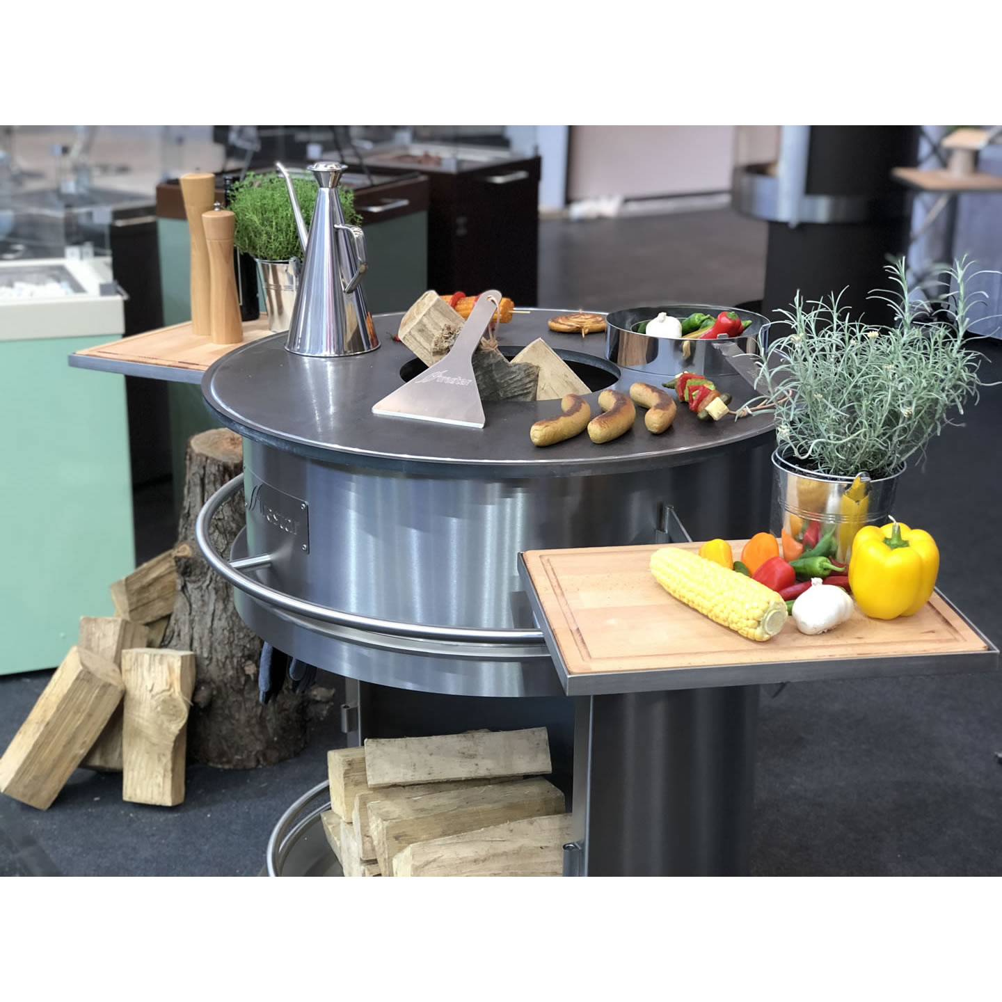 Mit unseren neuen praktischen Einhängetischen machen Sie aus Ihrem Firestar Grillkamin eine vollwertige Outdoorküche. Ob zum Tranchieren vom Fleisch, Gemüse schneiden oder abstellen vom Grillzubehör. Das hochwertige Holzbrett wird in einem massiven Edelstahlgestell geliefert. Die umlaufende Rille sorgt für ein sauberes Arbeiten.
