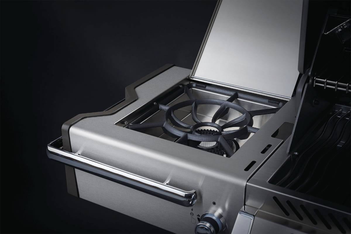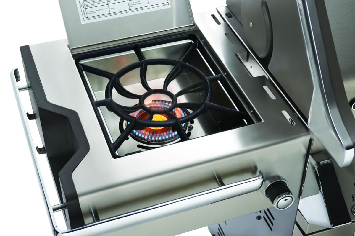 - Innovativer Power-Seiten-Brenner mit zwei Leistungsstufen: ein runder, zentraler Infrarotbrenner sowie ein äusserer Brenner für vielfältige Grillmethoden.
