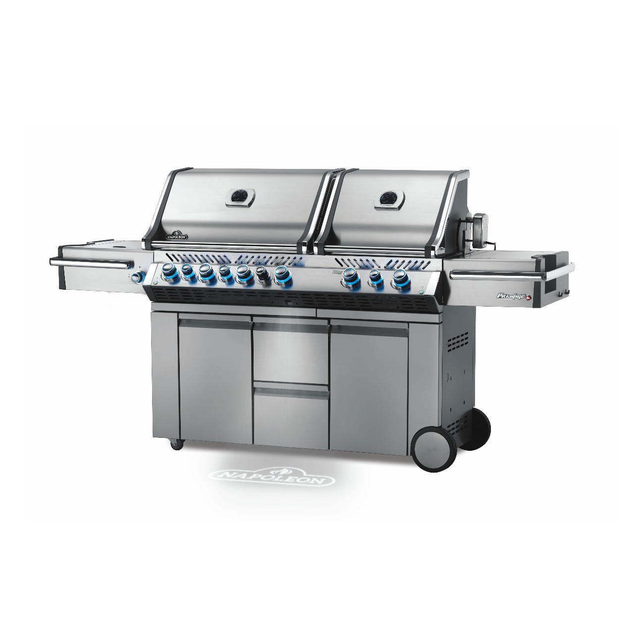 - platzsparende LIFT EASETM Rollhauben mit glänzenden Chrom-Akzenten und ACCU-PROBETM Thermometern