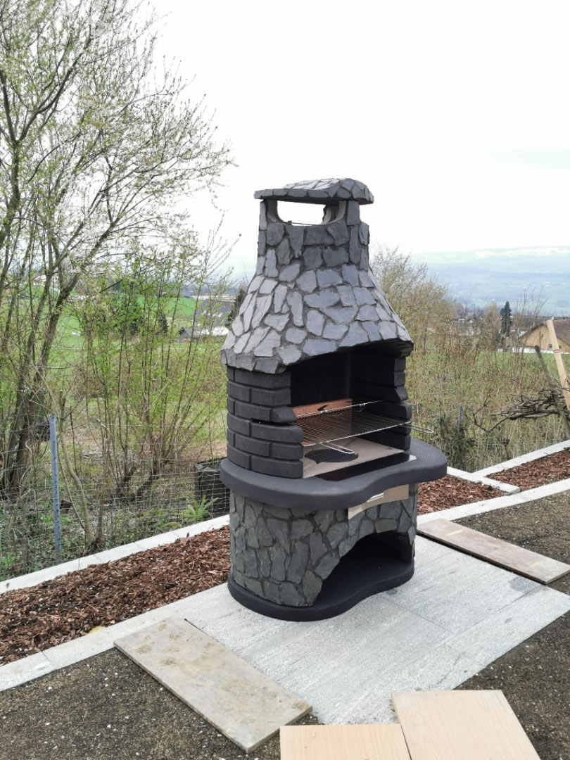 - Haube: dunkler Schiefer (Naturstein)